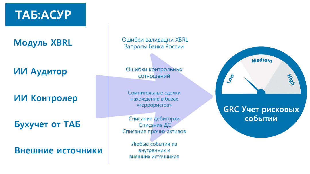 Программно-методический комплекс "ТАБ:АСУР" представляет собой интегрированную систему управления риском некредитной финансовой организации, включая управление риском информационной безопасности.