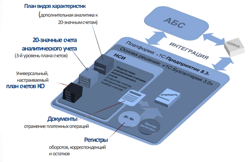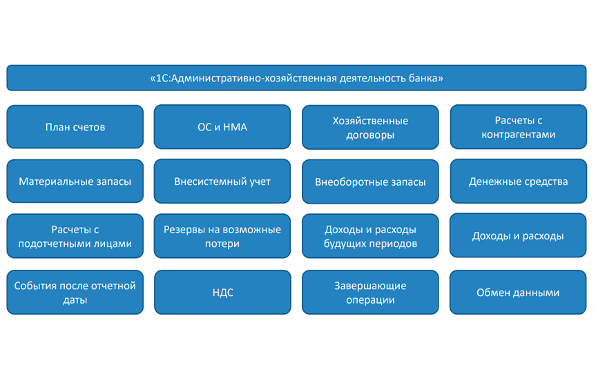 Решение позволяет эффективно организовать учет и управление административно-хозяйственной деятельностью кредитных организаций, использующих план счетов бухгалтерского учета, регламентированный Положением Банка России №579-П, а также Положением №446-П и новыми правилами учета, ориентированные на использование международных стандартов (МСФО-9, МСФО-16) .